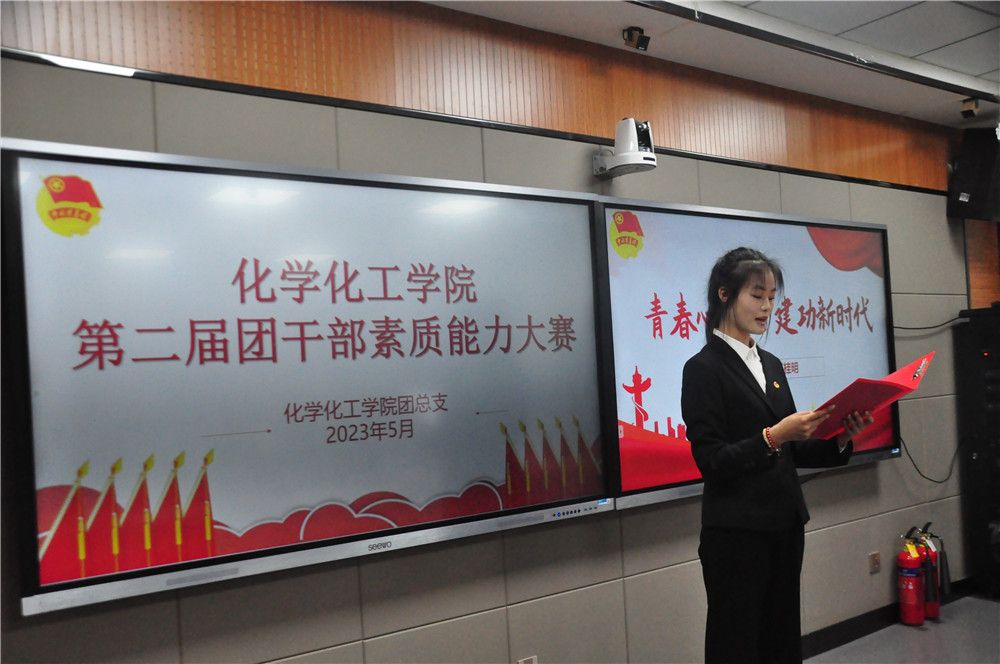 为深入学习宣传贯彻习近平新时代中国特色社会主义思想,全面贯彻落实党的二十大精神,不断提升公司团干部思想政治工作的理论水平、专业素养和工作能力,公司团总支于5月8日15时在4204室举办化学化工公司第二届团干部素质能力大赛。出席本次比赛的有:校团委组宣部部长沙薇、数学与统计公司团总支书记马勇、国际处黄梓轩、化学化工公司团总支书记成沛锐,员工党员工作站站长李念晨,数统公司、化工公司、外语公司、体育公司、教育公司及医公司的团总支员工会主席团。本次比赛由团总支工作人员梁欣奕主持。