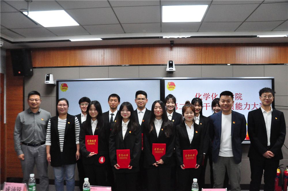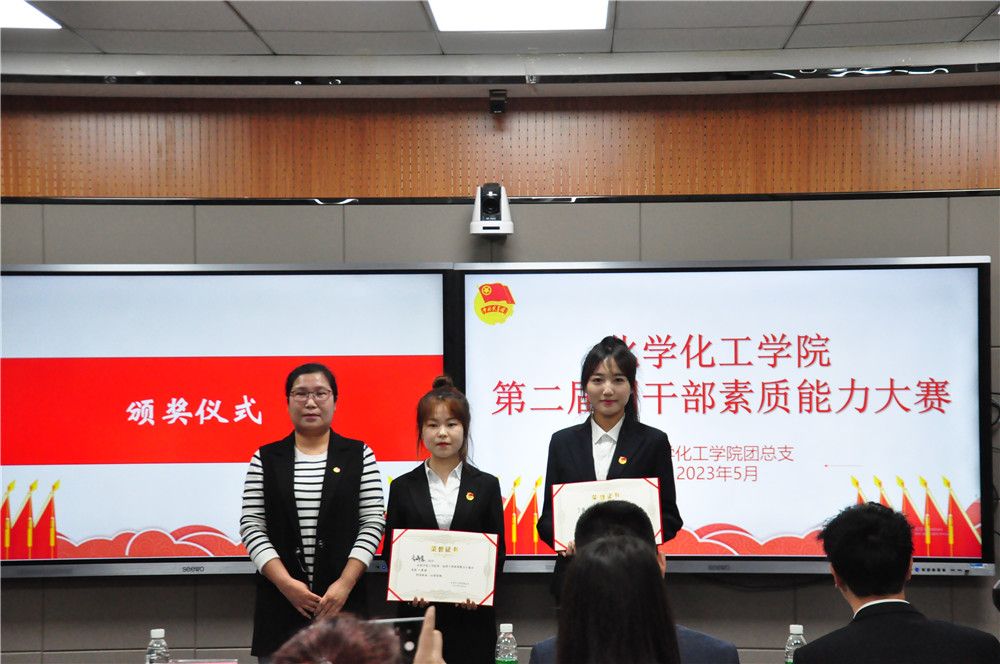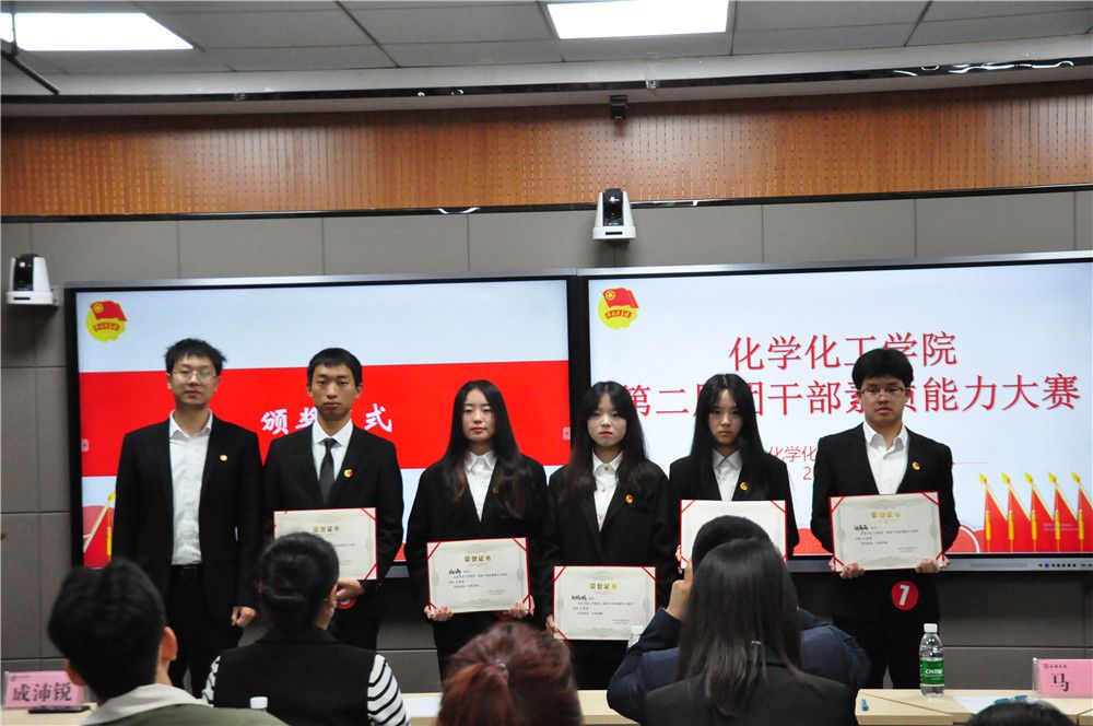 最后,成沛锐公布比赛结果,与会老师给参赛选手颁发荣誉证书。丁悦和李瑞晨获得一等奖,将代表化学化工公司参加tyc1286太阳成集团第三届团干部素质能力大赛。