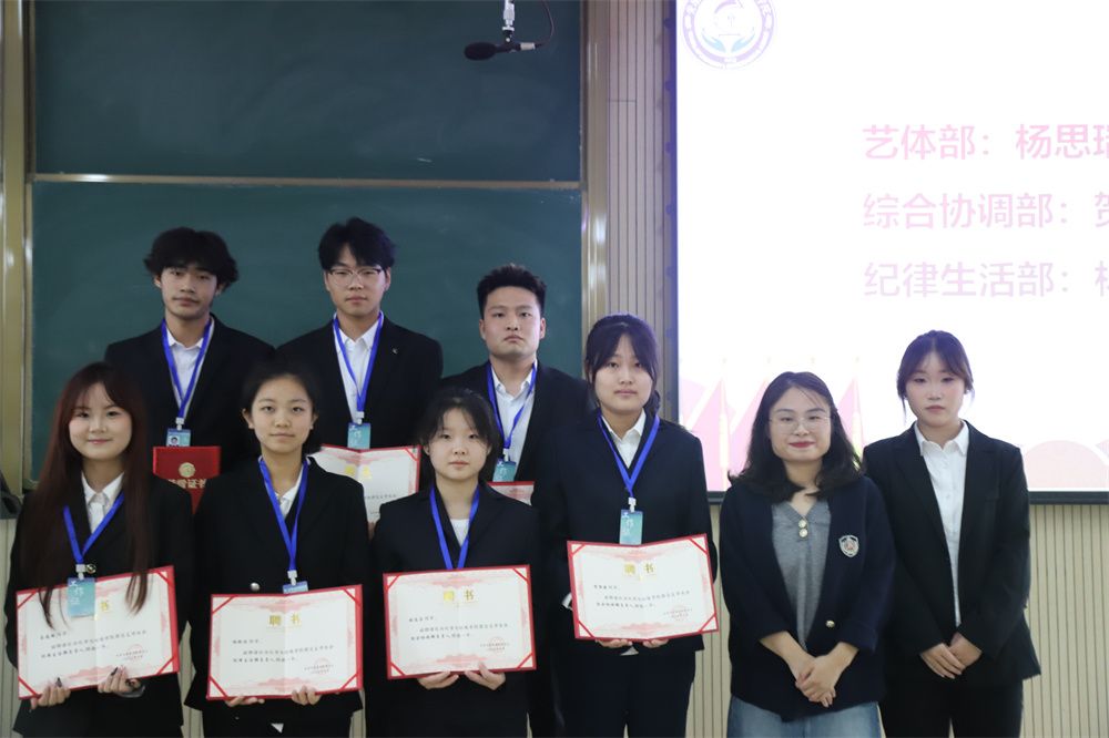 10月15日下午,tyc1286太阳成集团在江北校区1号教学楼1405室举行第37届团总支、员工会成立大会暨受聘仪式。公司党总支副书记沈菲、学工办副主任寇静媛、辅导员谢德安、全体员工干部参加会议。会议由团总支书记成沛锐主持。