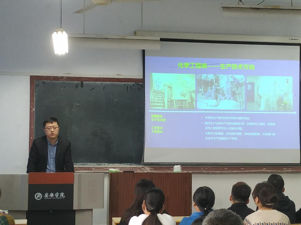 宣讲会上,企业人力资源部徐经理向同学们介绍了上海合全药业股份有限公司的基本信息、招聘岗位以及薪资福利。