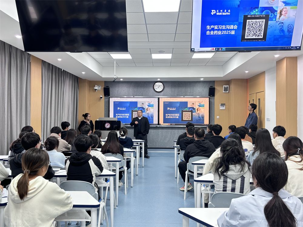 常州合全药业有限公司生产部主任王峥详细讲解了常州合全的发展历程、生产模式、研发及生产平台、生产环境等。并就常州在长三角的区位优势、行业的发展趋势和前景、薪资待遇、常州市人才引进政策进行介绍,并鼓励毕业生来常发展。