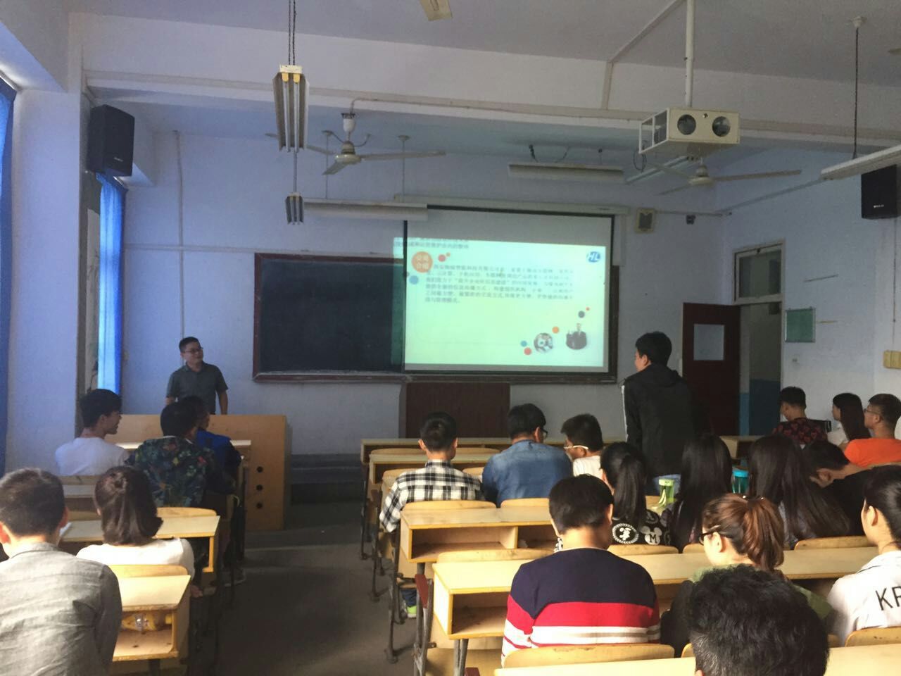 9月29日下午4点,西安海禄智能科技有限公司来公司召开招聘宣讲会,公司党总支书记谢军、学工办主任王瑜老师及2017届毕业生60余名员工在1219教室参加了宣讲会。