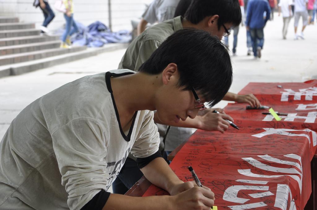 会议在三个多小时的研究探讨中临近尾声,张书记总结会议时代表我系对到场的老师和员工表示由衷的感谢,对同学们举办了一场成功的座谈会表示祝贺,他希望每一个人都能勿忘国耻,理性爱国,做好自己的工作和学习。最后在《爱我中华》的歌声中参会人员在宣传横幅上签字,签上自己的爱国决心。