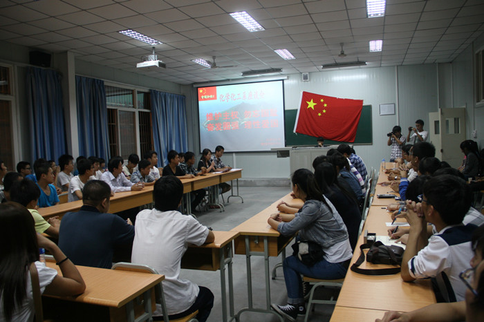 在“九一八”事变81周年来临,全国上下强烈抗议日本非法购买钓鱼岛及其附属岛屿的严重挑衅行径之际,我系于9月17日晚19点30分至22点30分,在东校区10号教学楼召开了“维护主权,勿忘国耻,奋发图强,理性爱国”为主题的化学化工系师生座谈会。参加会议的有宣传部部长李新安、系党总支书张立虎、系主任王浩东、副主任谢娟萍、系办主任胡敏、辅导员贾娟、王瑜、教师代表曹国标、王永伟、韩润林老师、我系各班员工代表以及其他部分院系员工代表100余人。会议由系员工会杜龙波、宋亮同学主持。