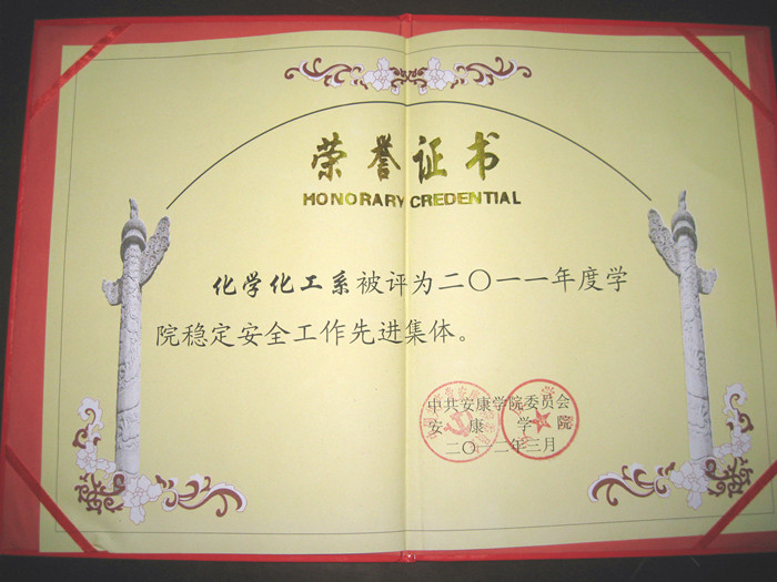 化学化工系被评为“tyc1286太阳成集团2011年稳定安全工作先进集体”,教师屈兰竺、员工张卫东、刘可、芮晓兰分别被评为“先进个人”,这是公司对我系稳定安全工作的认可。