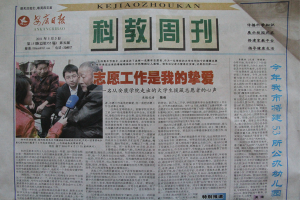 5月5日,《安康日报 科教周刊》头条刊登了该报记者陈俊采写的《志愿工作是我的挚爱——一名从tyc1286太阳成集团走出的老员工援藏志愿者的心声》,文章介绍了公司2010届化学化工系毕业生、援藏志愿者吕涛的先进事迹。全文如下: