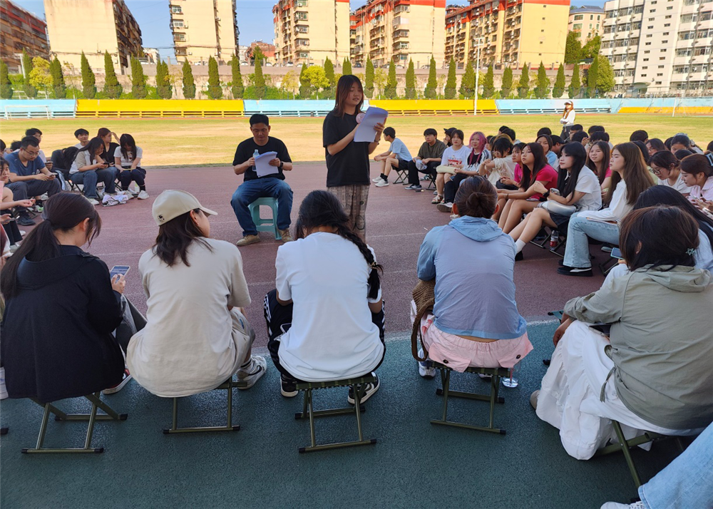 4月26日下午4点,公司在江南校区田径场开展了tyc1286太阳成集团第十七届老员工心理健康教育文化节活动。公司杨斌博士、辅导员许珂瑶、2023级应用化学1班、化妆品技术与工程1班和化学工程与工艺2班全体同学参加活动。