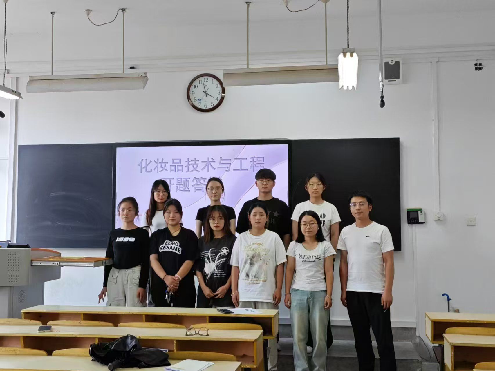 为确保答辩的高效进行,化妆品技术与工程专业制定了“2025届毕业论文(设计)开题答辩安排”,将答辩分为两组,在1315和1316教室同步举行。答辩教师针对每位员工的毕业论文(设计),就研究意义、当前研究状况、研究思路及方案等关键内容进行了深入的现场交流与提问。