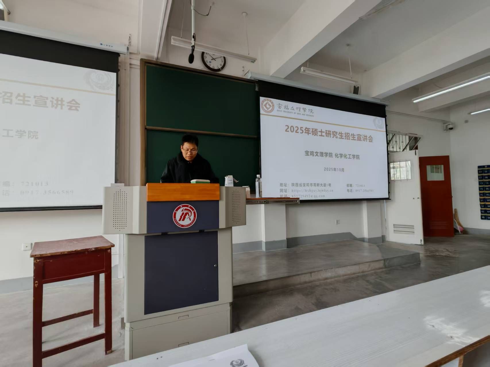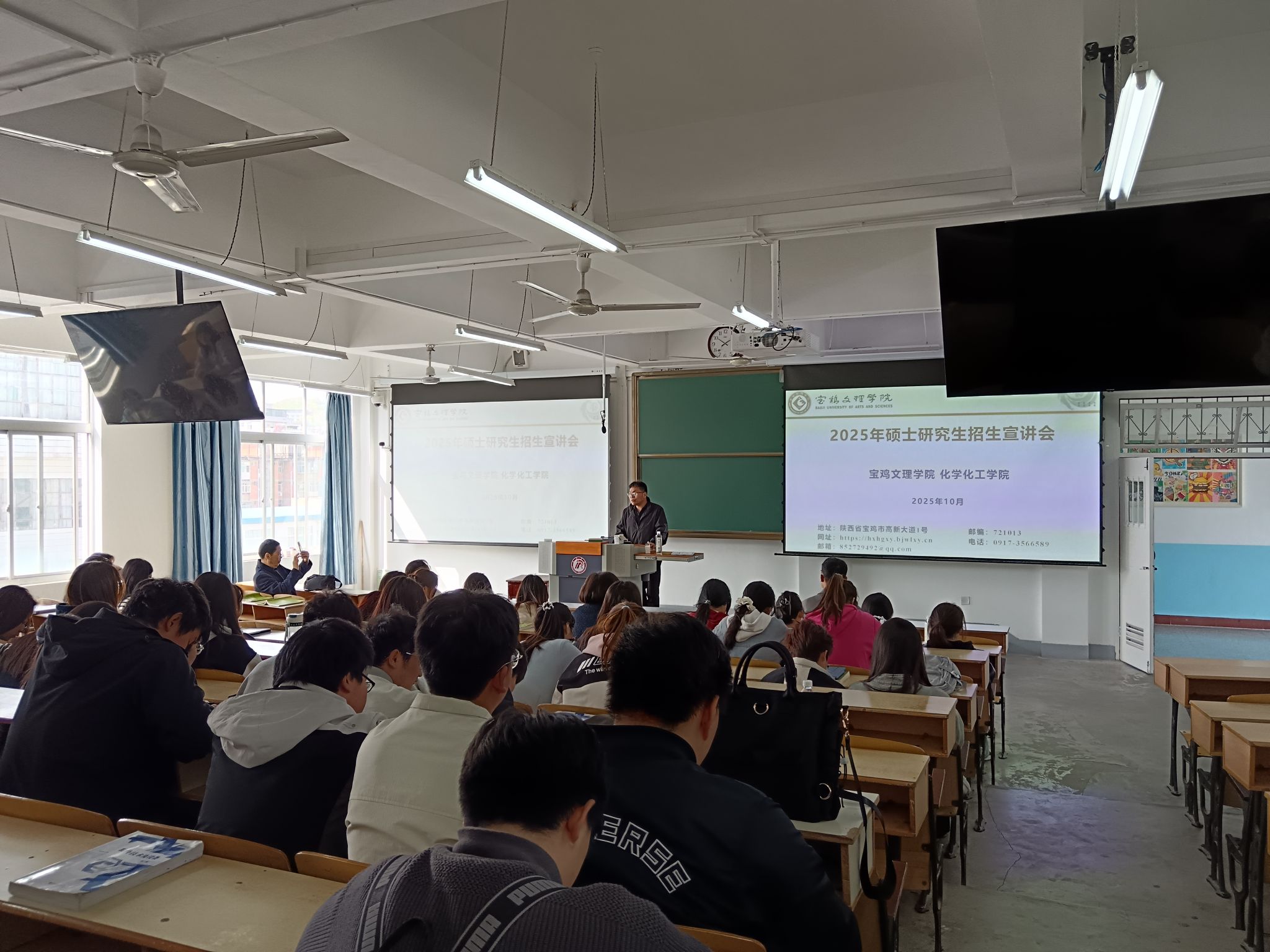 2025年4月3日,宝鸡文理公司化学化工公司党委副书记王宏江等一行人赴公司,于江南校区1510教室开展研究生招生宣讲活动。宣讲由王宏江书记主讲,吸引了公司部分大三、大四员工参与。