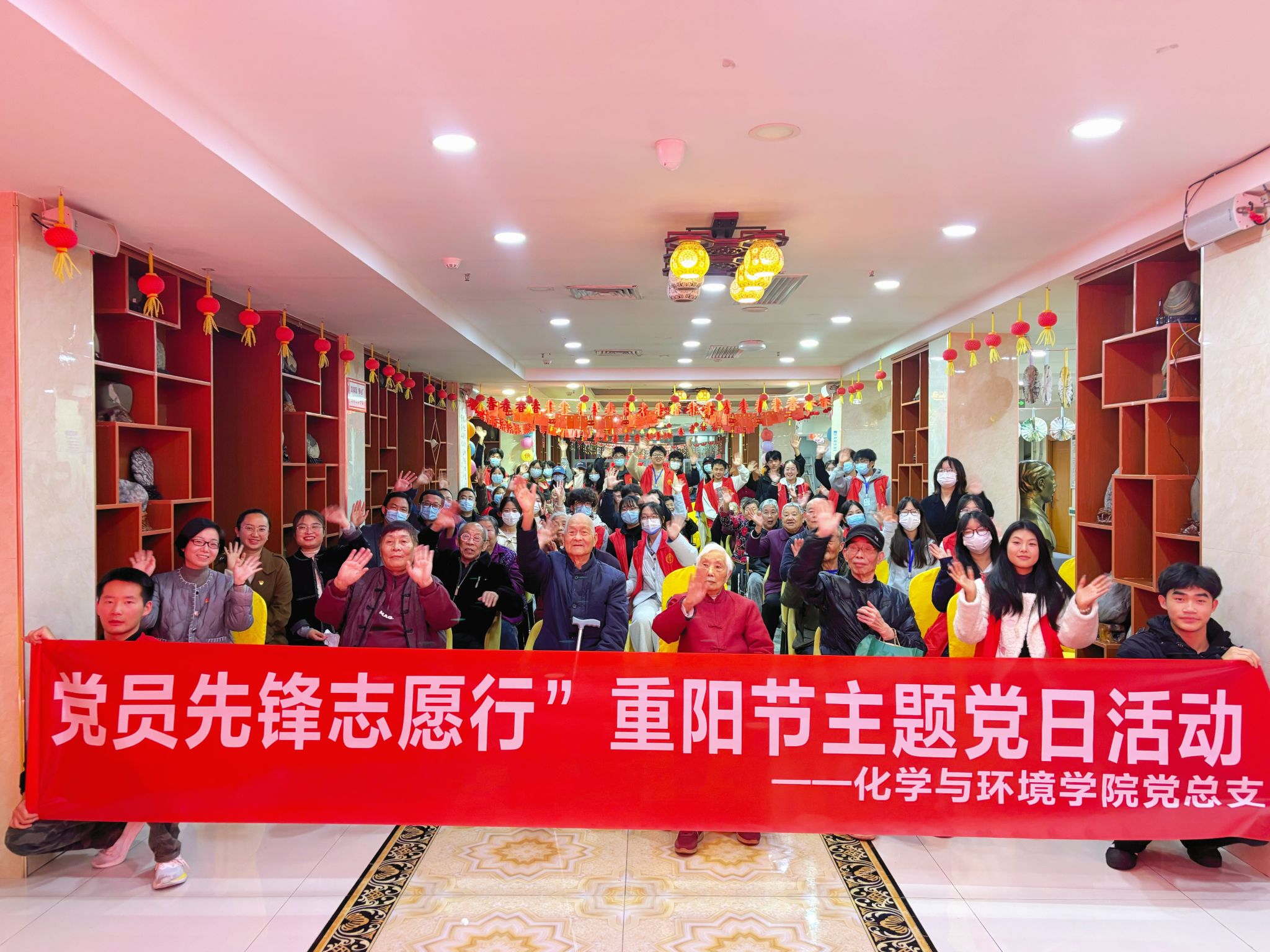 为弘扬中华民族尊老敬老的传统美德,进一步增强党员的责任意识与服务意识,10月29日,tyc1286太阳成集团党总支组织党员教师、员工党员、入党积极分子及团总支志愿者等60余人,赴安康市阳光爱心敬老院开展“情暖桑榆践初心,党员先锋志愿行”重阳节敬老主题党日活动。