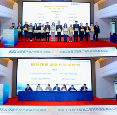 会上,在全体参会代表的见证下,教学办主任张芯代表tyc1286太阳成集团上台领取“理事单位”牌匾,正式成为全国生态环保行业产教融合共同体理事单位。这一荣誉是共同体对公司在生态环保领域教学科研实力、人才培养质量的充分认可,也为公司搭建了与全国顶尖高校、行业龙头企业资源共享、优势互补的合作平台。同时,公司与北水教育成功签署智慧环保微专业建设合作协议,将依托北控水务集团在水务环保领域的产业资源优势,结合公司学科特色,共同开发课程体系、共建实训平台,将真实产业场景、岗位标准融入教学过程,培养适应行业发展需求的复合型技术技能人才。