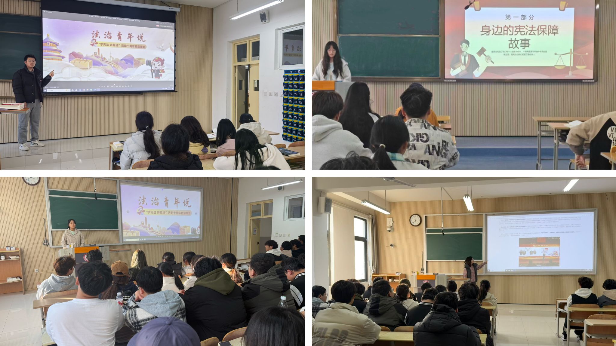 各班级辅导员组织员工登录教育部全国青少年普法网,集中观看了“法治青年说”专栏展播内容。历届“学宪法 讲宪法”活动优秀选手的卓越风采与成长故事,为同学们树立了生动的榜样,使其深刻感受到法治精神在青年群体中的传承与力量,激发了大家学习法律知识、弘扬法治文化的内在热情。