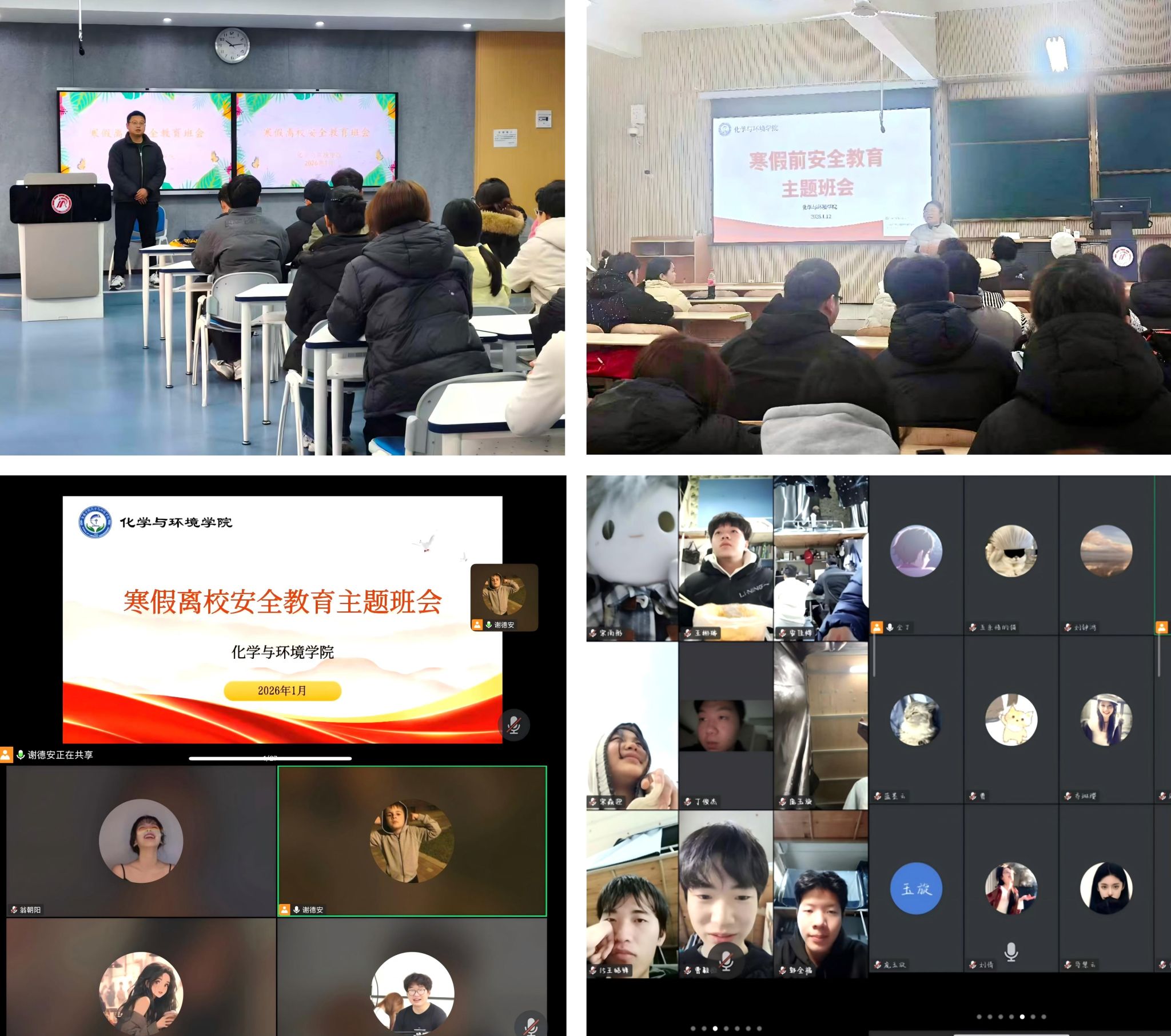 在主题班会上,各年级辅导员结合近期高校发生的典型案例,围绕交通安全、消防安全、防范电信网络诈骗、人身与财产保护等重点领域进行了系统讲解与提醒。辅导员强调,离校返乡需乘坐正规交通工具,在校期间严禁使用违规电器,离校前宿舍务必断水断电;并通过剖析常见诈骗手法,帮助员工提升识别与应对能力。班会还明确了离校登记、行程报备、按时返校等相关管理规定,引导员工合理安排假期学习生活,度过一个充实、安全的寒假。