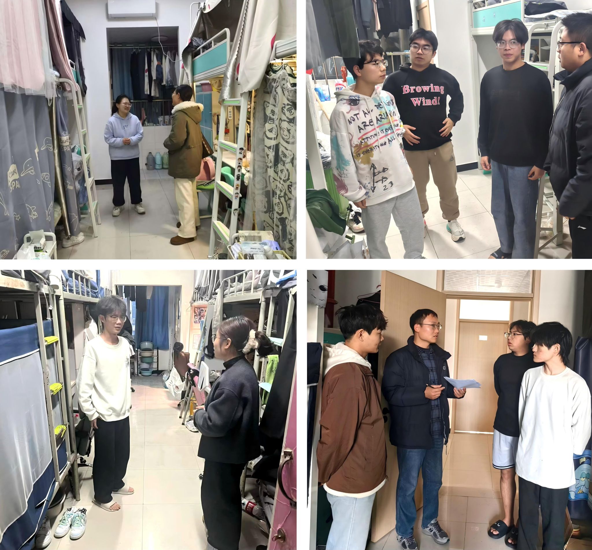 班会结束后,公司全体员工工作人员深入员工宿舍,开展了全面、细致的安全隐患排查。排查工作聚焦用电安全、消防设施、门窗锁具等重点环节,对可能存在的风险进行逐一检查与登记,对发现问题现场提出整改要求。走访过程中,辅导员老师与同学们亲切交流,了解假期安排与实际困难,叮嘱大家注意旅途安全,保持联络畅通,遇到突发情况及时与公司联系。